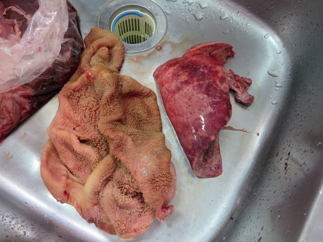 右側が肺。フカフカ軽いです。これは管を上にして下茹でをします。